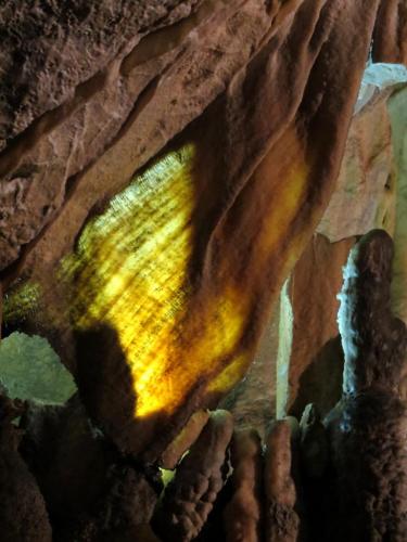 Puis nous reprenons notre route pour le canyon. La visite s'enrichit par une colonie de chiroptères (chauve-souris). Nous percevons des infrasons, et de temps à autres, quelques-unes d'entre elles daignent se montrer.