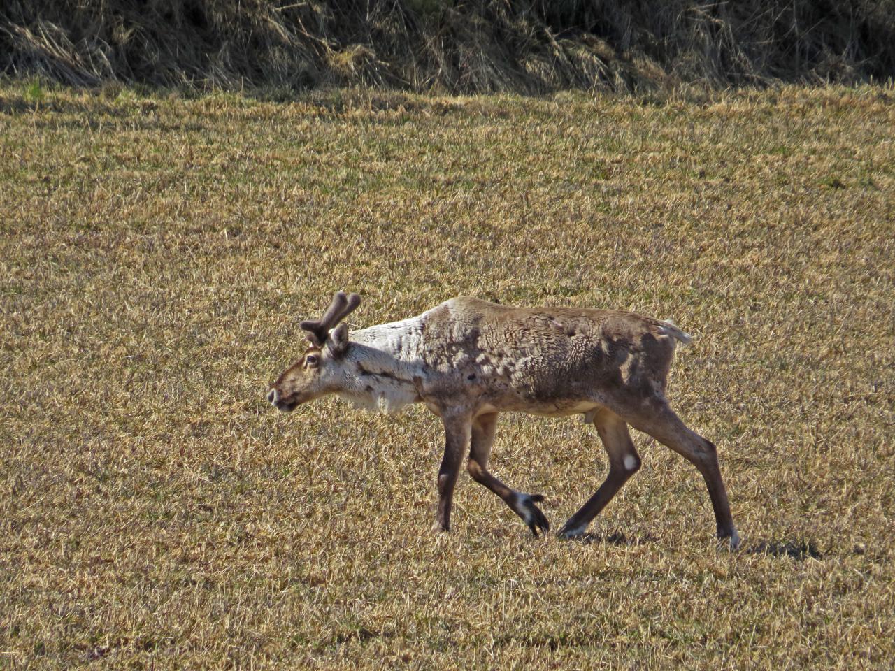 Nous partons à la recherche des rennes forestiers (sauvages). Nous en trouvons quelques-uns. Plus loin dans la taïga, à quelques 20km des premiers, 7 à 8 individus sur une prairie humide.