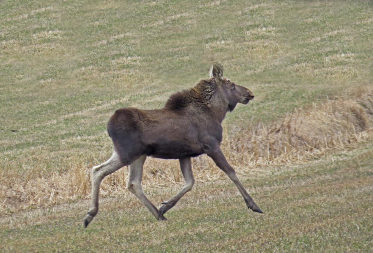 Avant de nous en aller, ayant fait part de nos observations de la veille, je propose une balade sur le même secteur avant le déjeuner. Les plongeons sont encore là et, sur le retour, un jeune élan mâle...