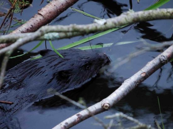 Je suis toujours seul, mon compagnon est resté se reposer. Je vais à la petite rivière, là ma famille castor s'active, je les observe pendant une bonne heure.