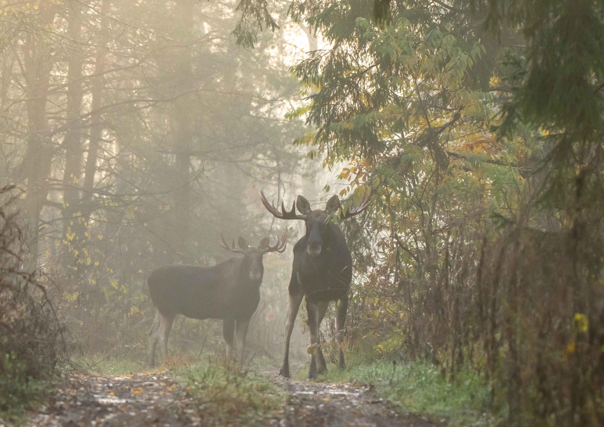 Au fil de nos explorations, nous observerons et photographierons les élans aux silhouettes imposantes, les cerfs et les biches, loups et renards dans les clairières.