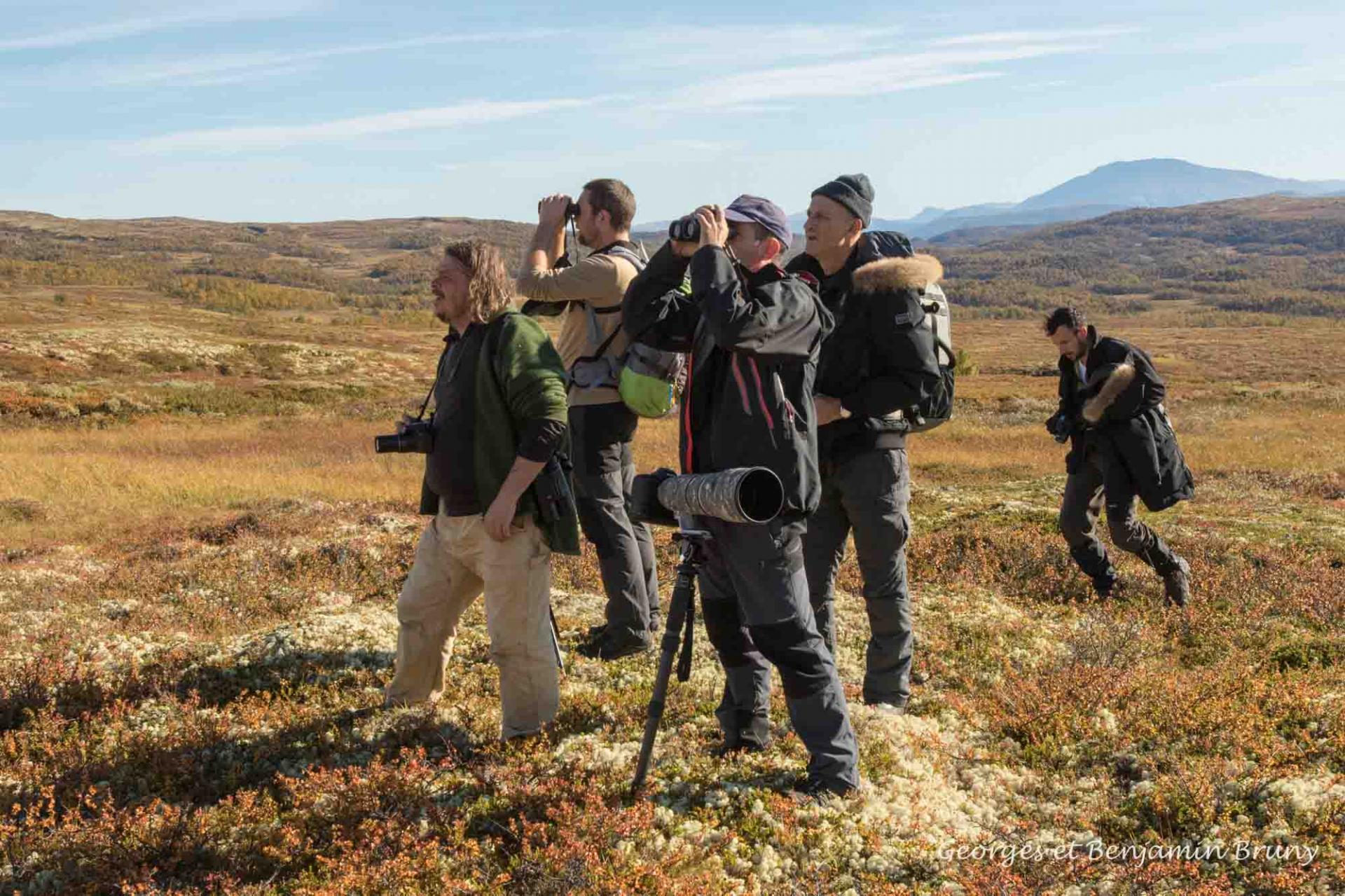 Entre ces deux moments culminants, notre journée sera partagée entre le repas du midi, un peu de repos et beaucoup de marche afin d’y rencontrer les oiseaux qui s’activent régulièrement en cette période et les grands mammifères sauvages dont les empreintes laissées nous permettront de deviner leur présence. Selon l’époque, possibilité de ramasser une poêlée de girolles, sans oublier les délicieuses myrtilles, airelles, framboises ramassées à la fin d’une approche pour se restaurer.
